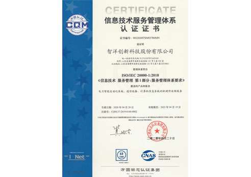 信息技术服务管理体系认证证书-中文版